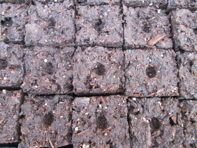 Looking ahead, i can see added thin wire hoops to these trays and pulling some repurposed, recycled bags over the top and creating a mini greenhouse; adding wood to the sides so that the trays can be stacked without damaging seedlings. I used a bagged potting mix as an experiment to see how well they hold up. There’s soil block recipes out there that can be used, which i may revisit. Ideally it would be great to come up with a recipe that doesn’t require buying bags of stuff, especially peat moss (can be too acidic for plants)