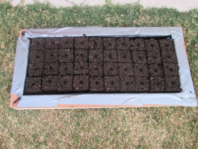 I added some plastic that was lying around to it at the end to give it some extra protection. Secured with a duct tape batting that is stapled through. We’ll see how they hold up. Soil blocks are notorious for getting dry fairly quickly. The tight spacing and plastic may help with that.