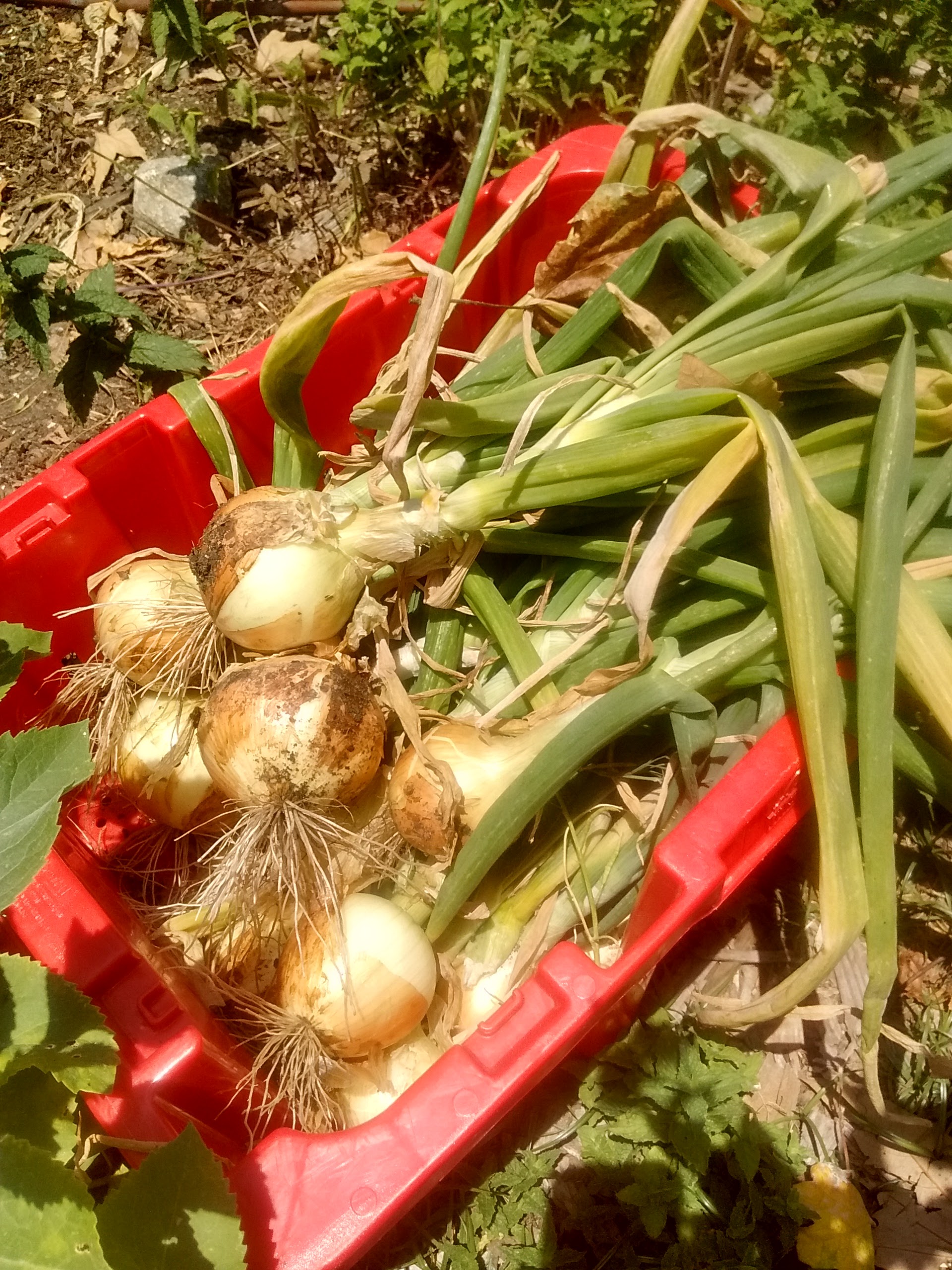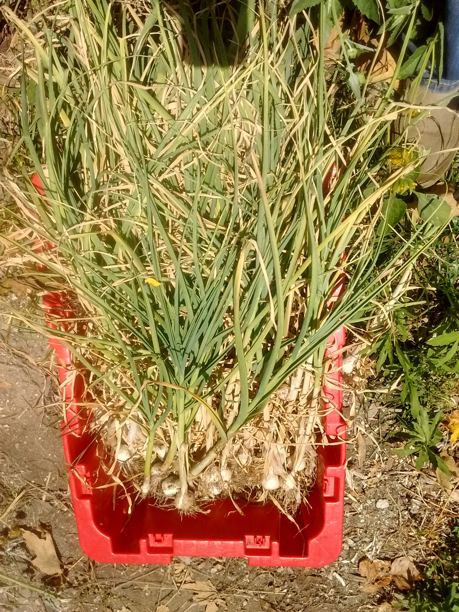 Nine pounds each of yellow onions and garlic. Very tasty.