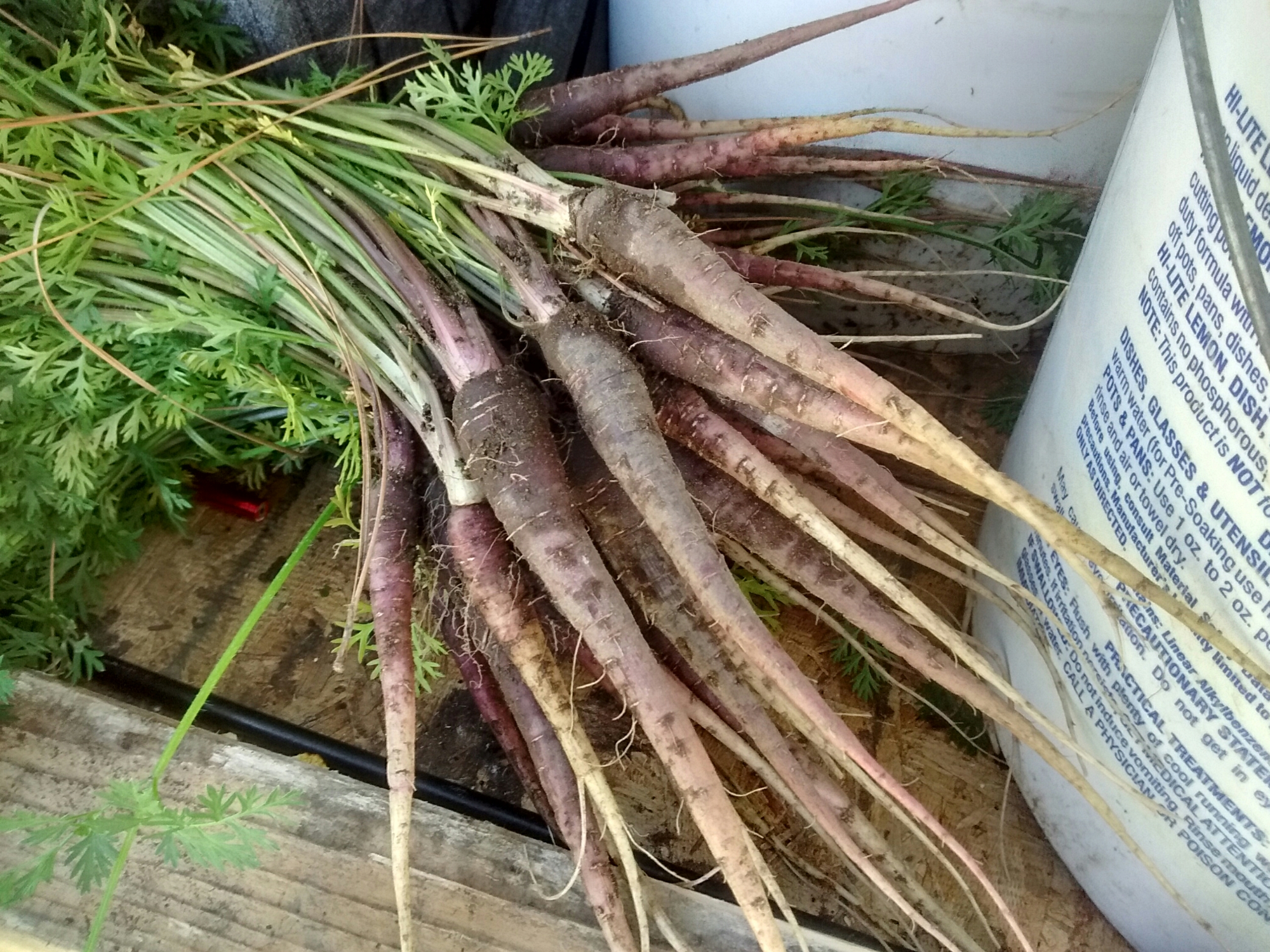 According to Jo Robinson, Dutch nationalism played some part in our decreased consumption of purple carrots and the increased production and consumption of orange carrots. Purple carrots contain more Anthocyanines, cancer fighting pigments that plants produce to protect itself. These are pretty tasty just roasted and lightly salted.