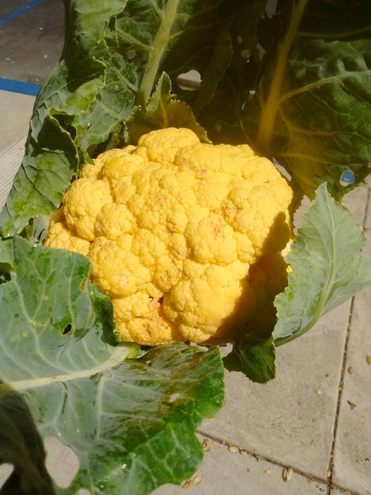 Here we are in June, harvesting beautiful heads of Cauliflower.